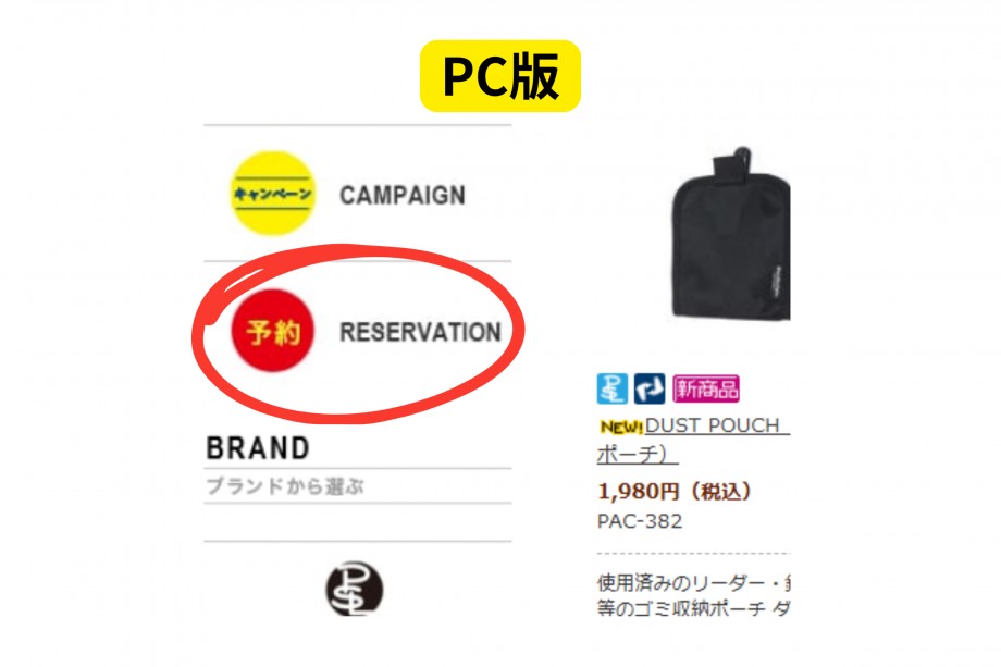 Pazdesign公式WEBショップ内『予約 RESEAVATION』ページにて