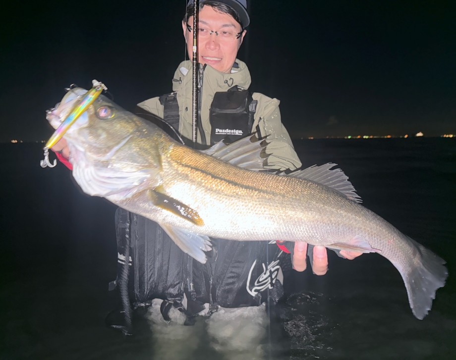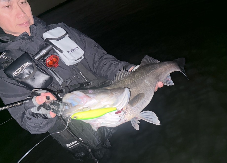 表層はマッチボウで中層はリバード90Sで探り、ボトムはディブル65Sの組み立てでコンスタントにシーバスをヒットいますさせています。