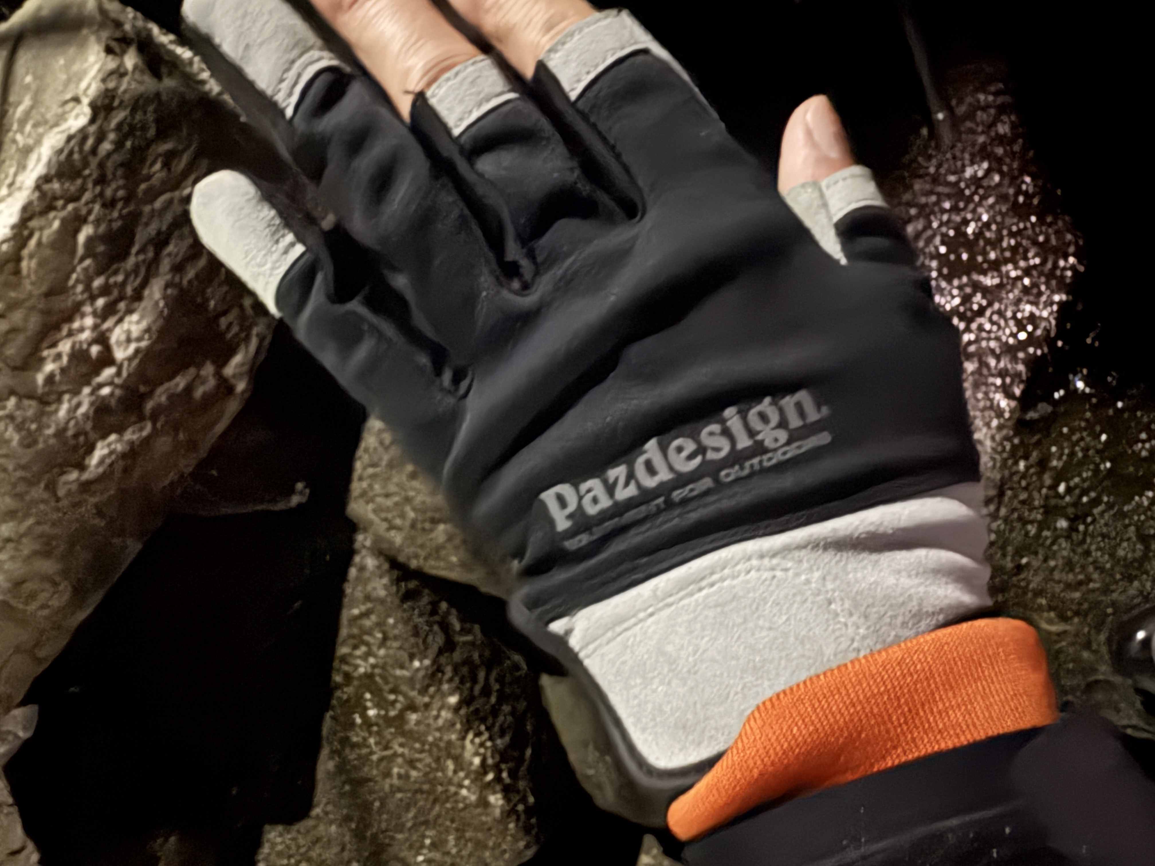 通気性のある素材、かつ防寒素材ではないので装着した瞬間は『やっぱ寒いな…』でしたが、装着感や手のかじかみ方は釣行終了までずっと変わらず。