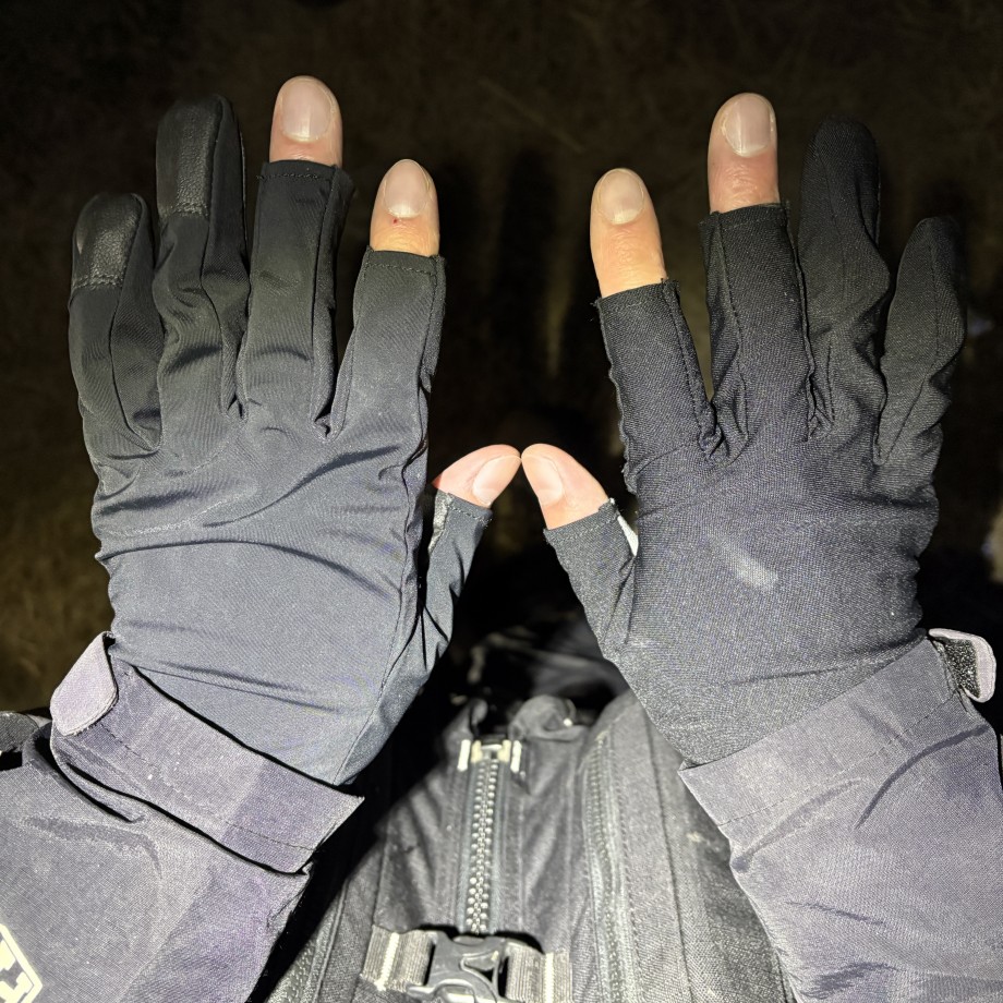 防寒素材ではないのにこの温度帯でも寒くない、しかもエントリーからポイントまで30分程歩いても全く蒸れてないしグローブが暑いと感じる事もありません。