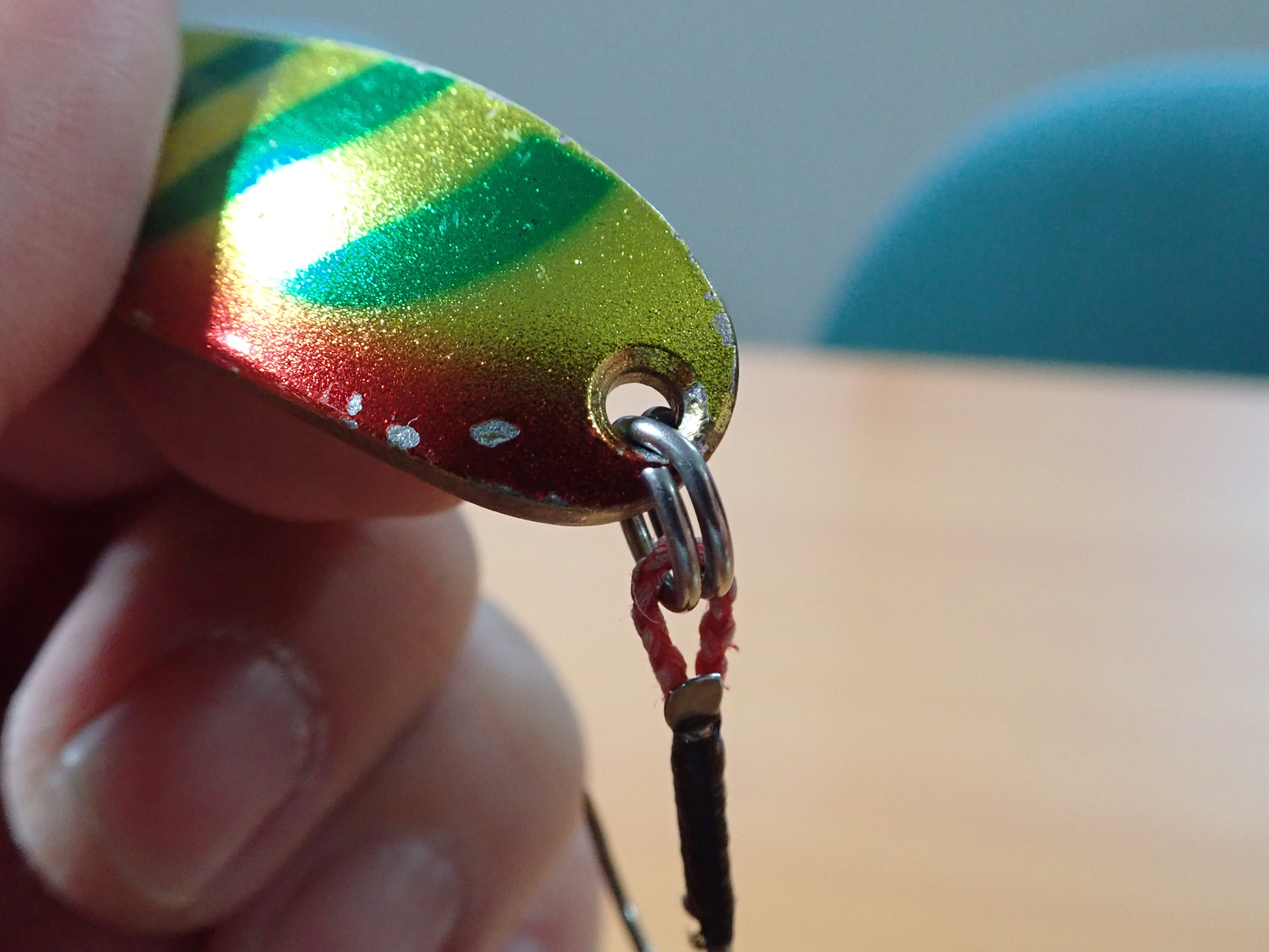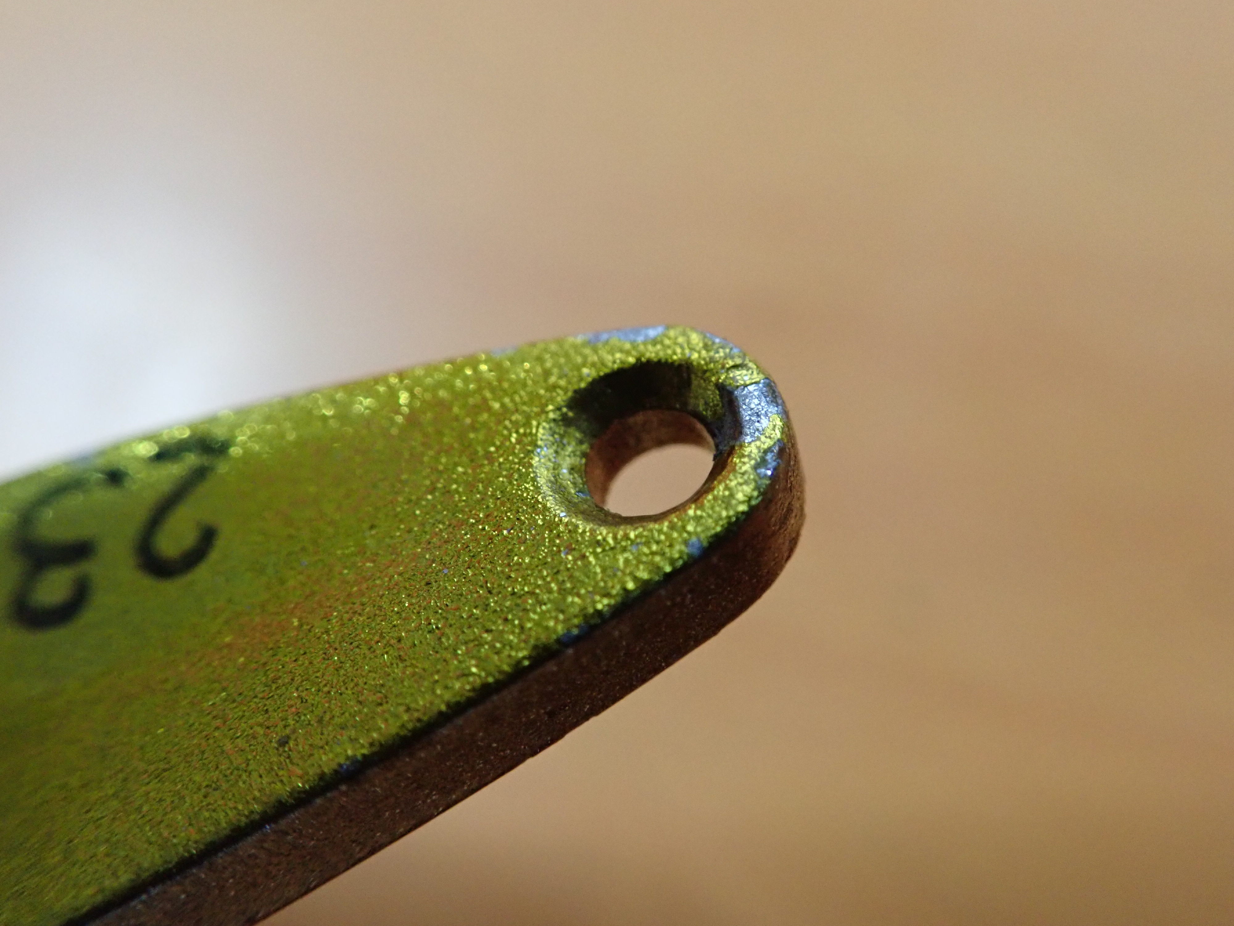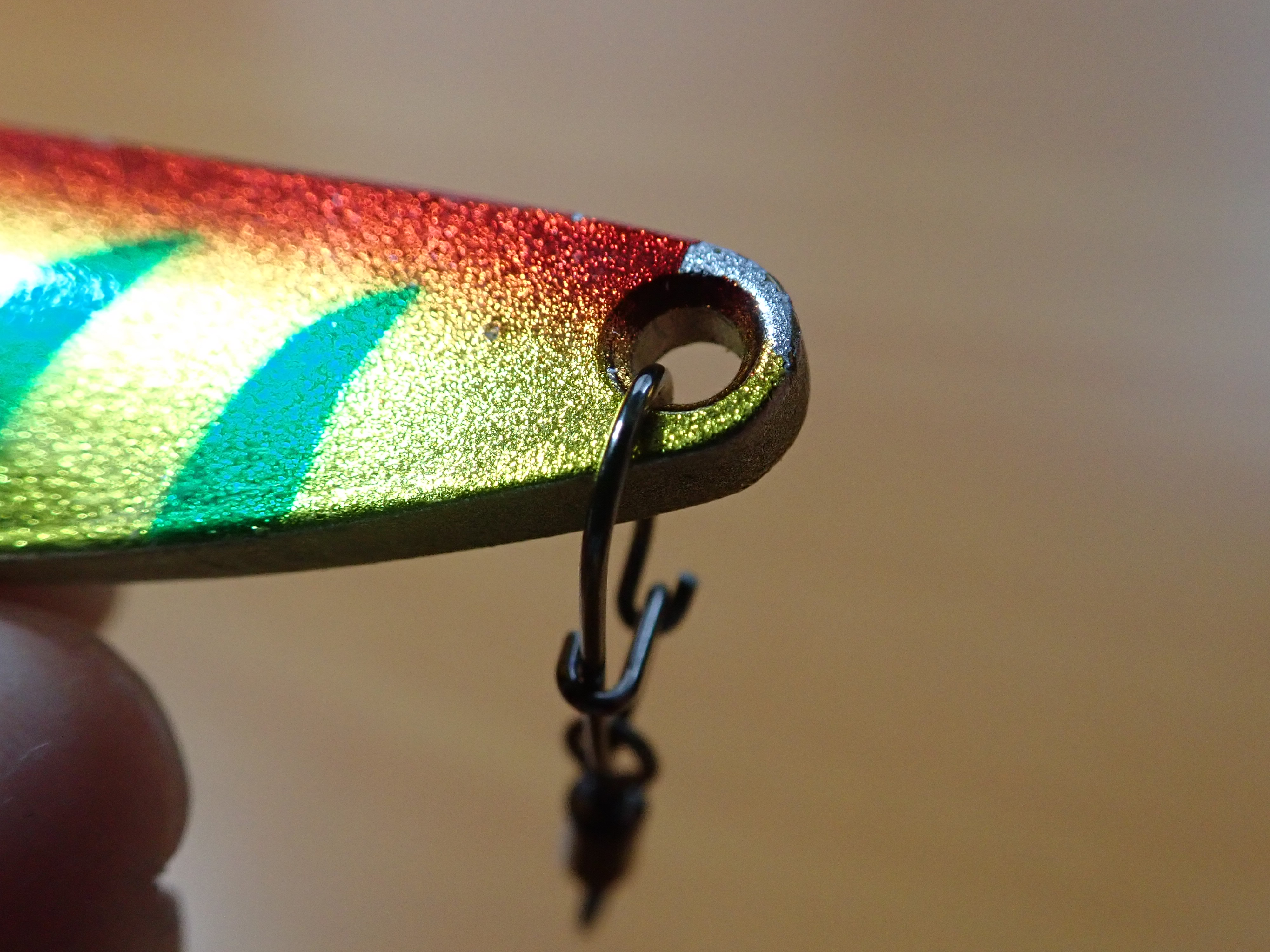 なので、【Fallo(ファロン)】このアイ部分の角を面取りし、すり鉢状のテーパーをつける事で実に滑らかにアクションするようになりました。