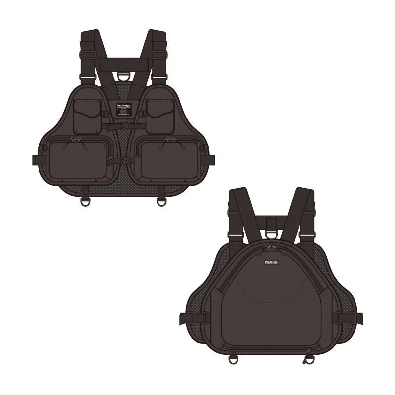 一見クラシカルなストラップベストを思わせる外観ながら生地や機能を現代的にアップデートしたパックベストです。