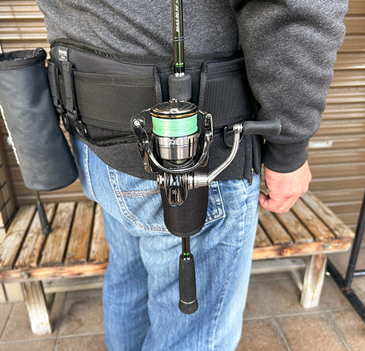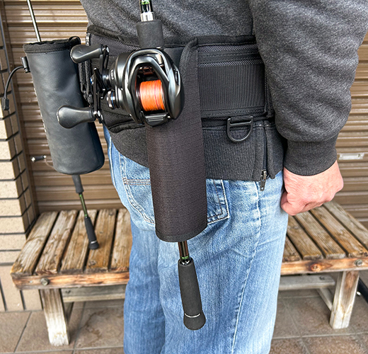 ベストやウェーダー・サポートベルトに装着してルアー交換時等にロッドを一時置きして両手がフリーになります。