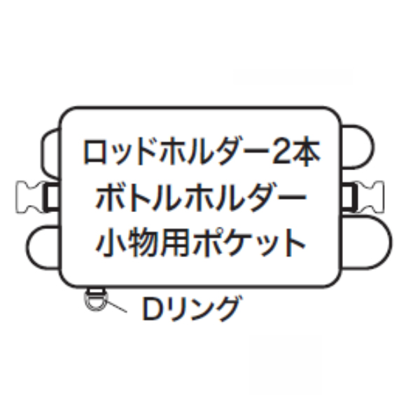 ロッドホルダー2本、ボトルホルダー1個、小物用ポケットが装備。